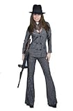 This New Gangster Moll Suit makes a Great Costume but looks Good enough for a Night Out! (Shown in Black with white pinstripes - available in Variety of Colors.) Please also note this item runs a little small it is recommended to buy up a size..../ Black with Red Pin Stripe, Size X-Small - Contemporary Gangster Moll Double-Breasted Suit / Womans Suits